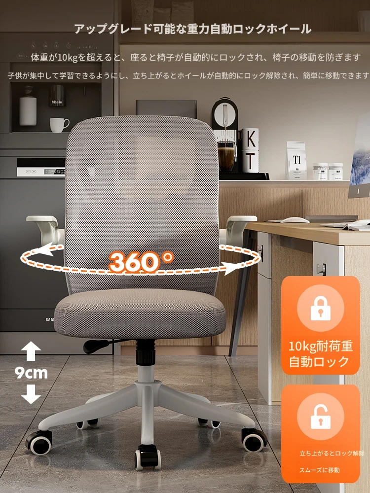 快適な長時間座りに最適!家庭用リクライニングデスクチェア - くつろぎのソファ椅子、昇降機能付き、寝室にもぴったりなオフィス回転椅子!