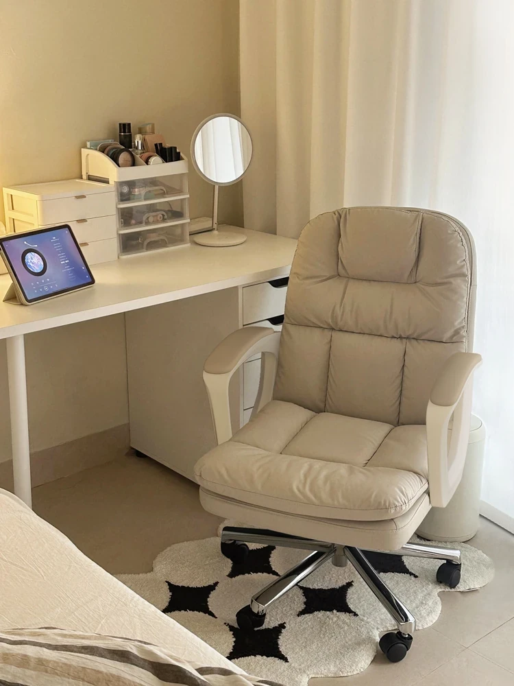 在宅で快適に使用できる高機能オフィスチェア|勉強や作業にも最適!女性の寝室や書斎にぴったりなデザイン|長時間座っても疲れにくい背もたれ付きで、リラックスしながらおしゃれにメイクも楽しめます。