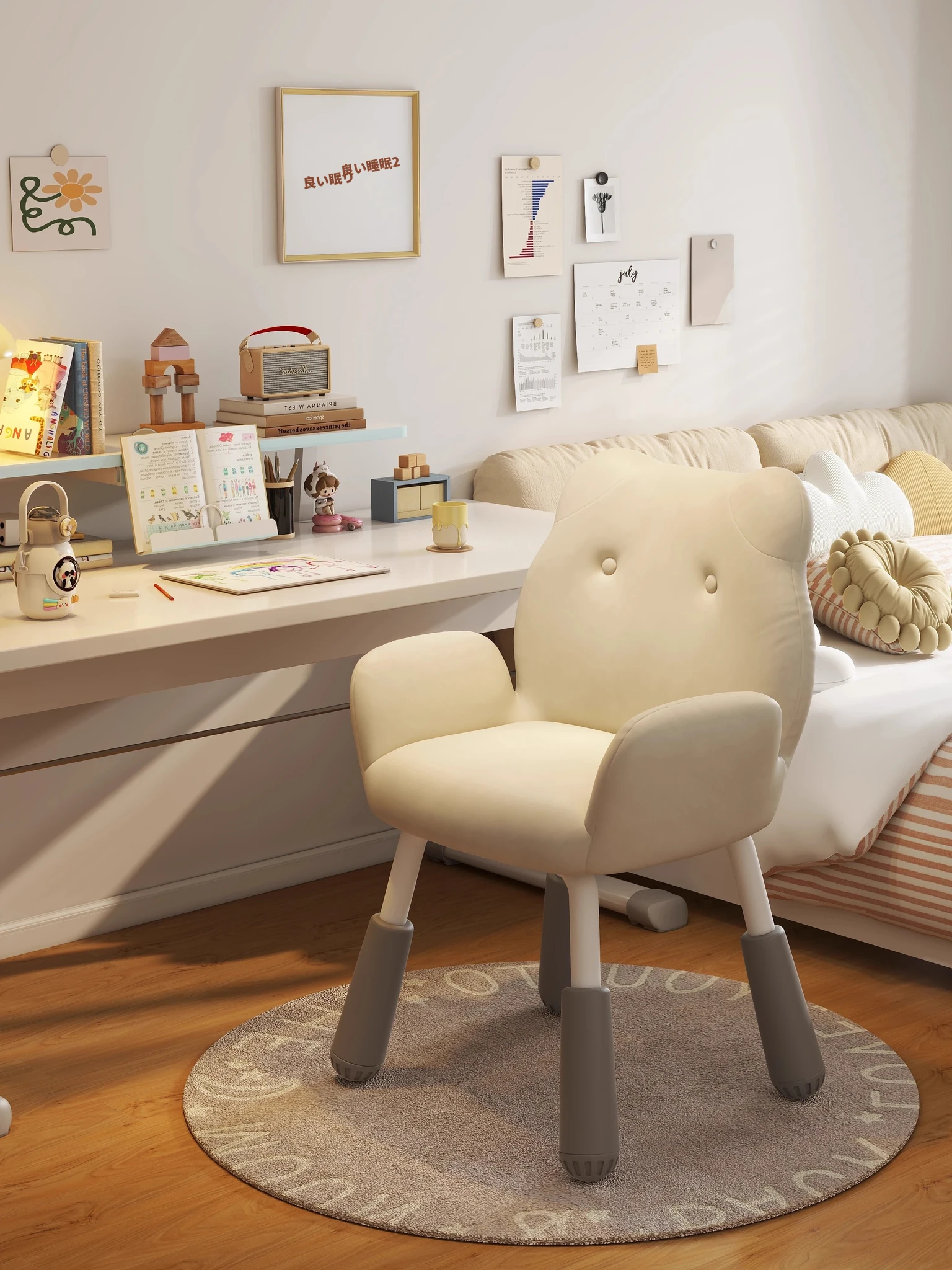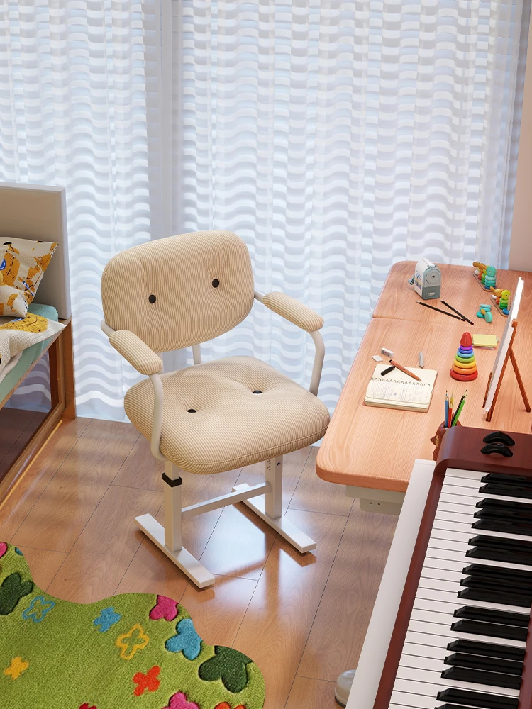 かわいい女の子のためのリフト式学習椅子 - 快適なデスクチェア、メイクアップ用にも最適!長時間座っても疲れにくい背もたれ付き、寝室やリビングにぴったりな家用チェア。