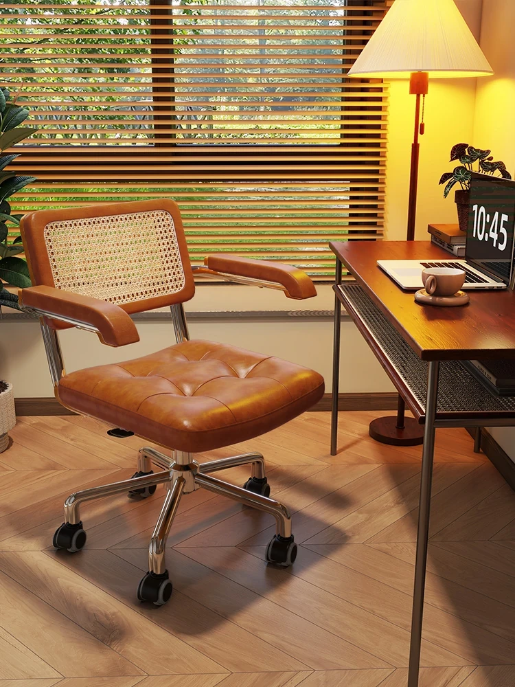 家庭用コンピューターチェア|軽やかで高級感のあるヴィンテージデザイン|回転機能付き|快適さ抜群で長時間座っても疲れない|書斎や寝室に最適な木製リクライニングチェア