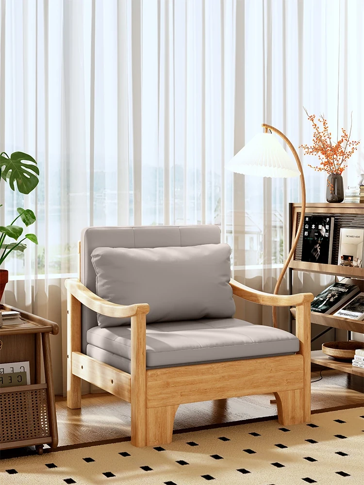 2024 New Compact Solid Wood Sofa Bed - Foldable Multi-Functional Design for Small Apartments, Modern Chinese Style, Perfect for Living Room and Balcony Use