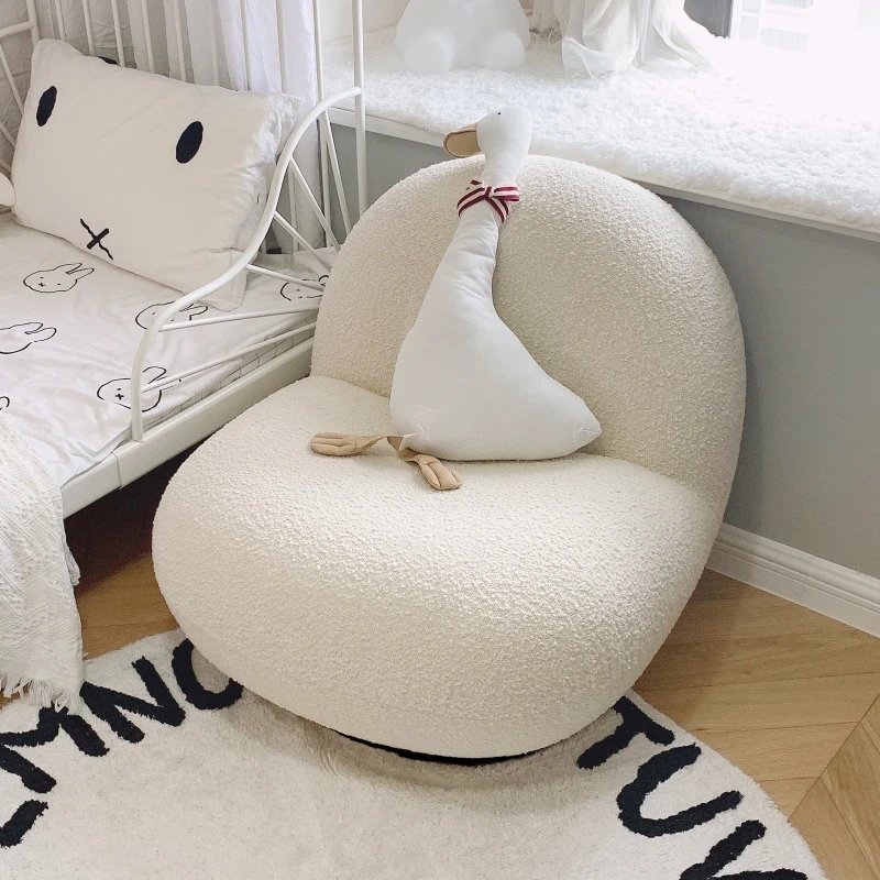 Nordic White Single Sofa Chair in Lambswool – Minimalist Luxurious Leisure Chair for Living Room and Bedroom, Stylish Designer Armchair for Ultimate Comfort