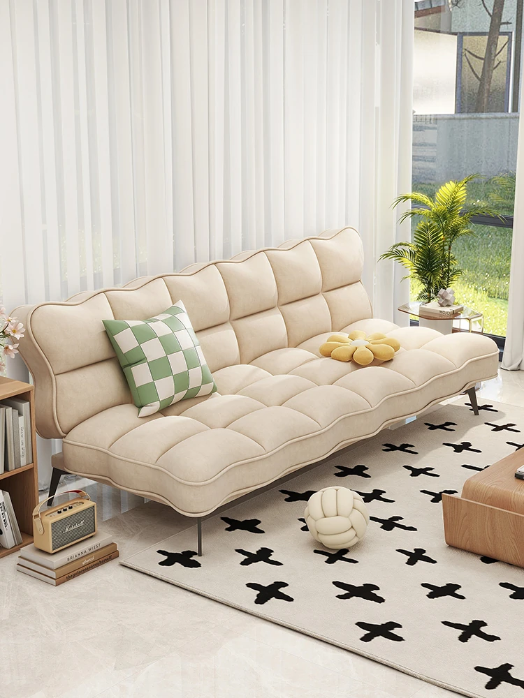 French Chic Creamy Sofa Bed – Modern Minimalist Foldable Multifunctional Double Sofa for Compact Living Rooms. Perfect for Style and Versatility!