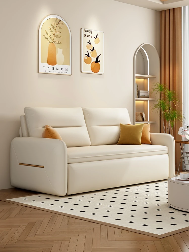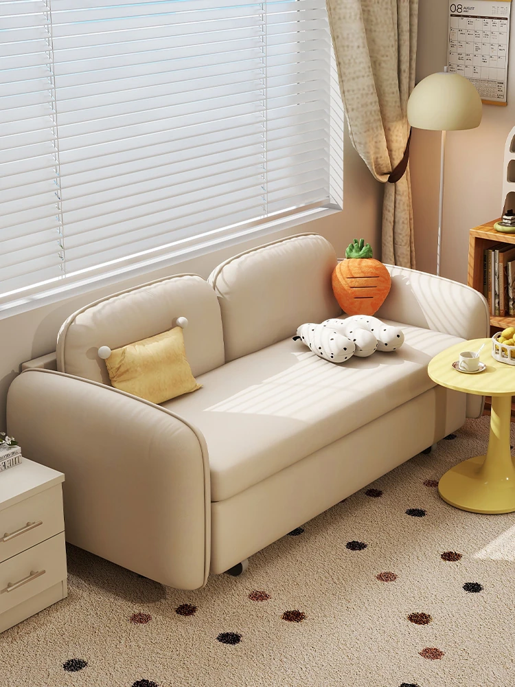 2024 New Creamy Beige Foldable Sofa Bed for Small Spaces - Versatile and Stylish, Perfect for Living Room or Home Office, Ideal for Temporary Guests