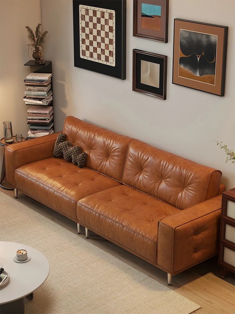 Vintage Oil Wax Leather Sofa - Elegant French Retro Style Perfect for Small Living Rooms - Double and Triple Seat Options in Black and Brown – Stylish, Compact Comfort for Modern Spaces