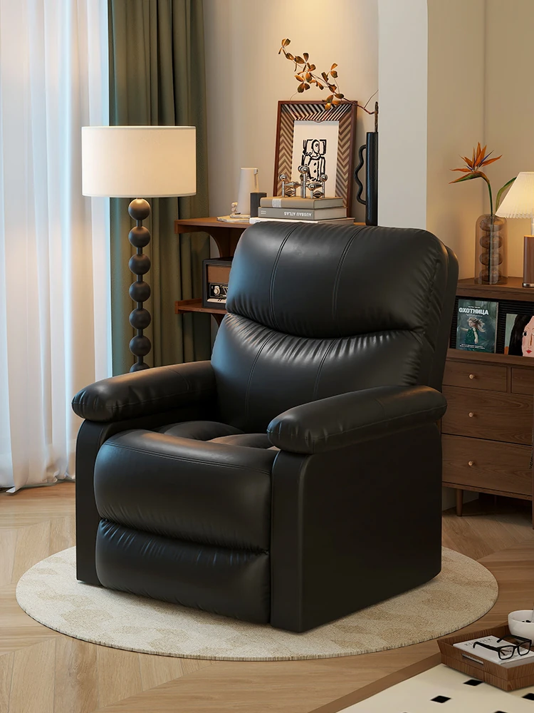 Stylish Black Leather Recliner Chair – Luxurious Single Sofa for Home & Living Room – Comfortable and Relaxing Space Capsule Design for Ultimate Leisure