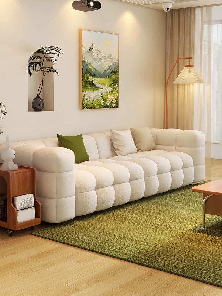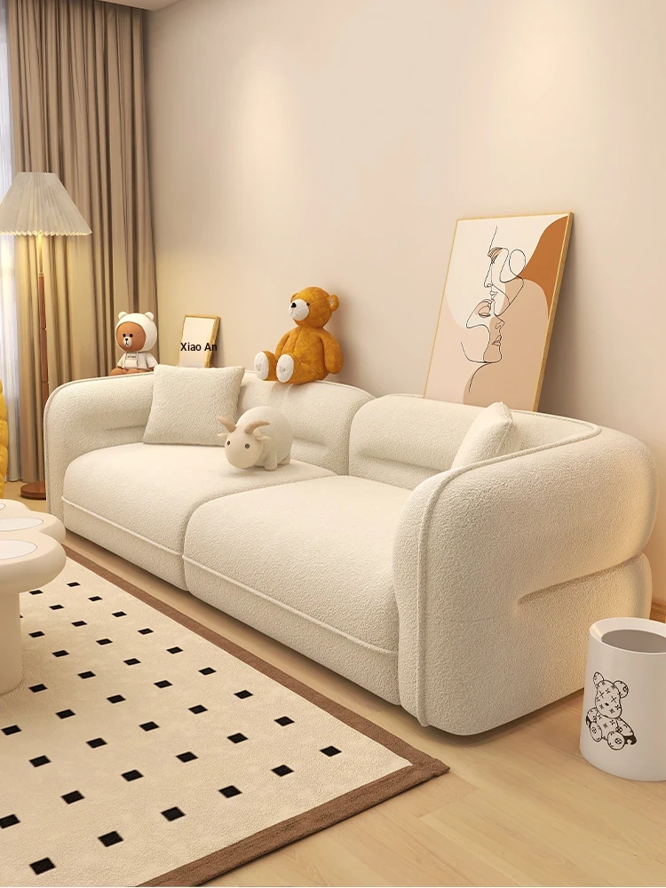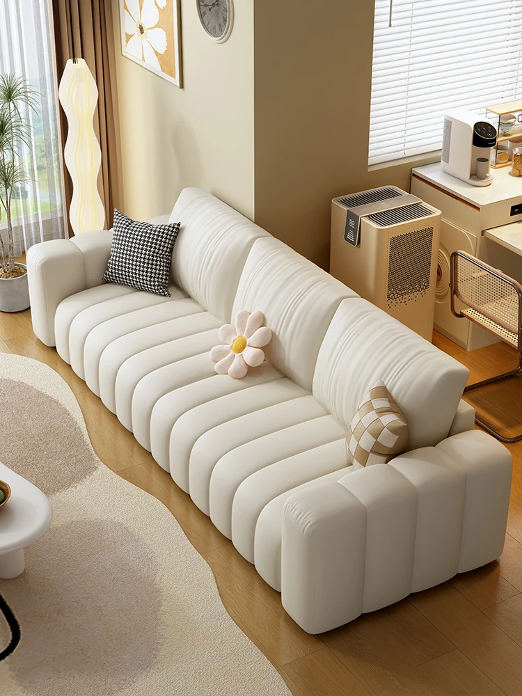 Creamy Cotton Candy Fabric Sofa for Living Room - 2024 New Trendy Minimalist Three-Seat Sofa Perfect for Small Spaces