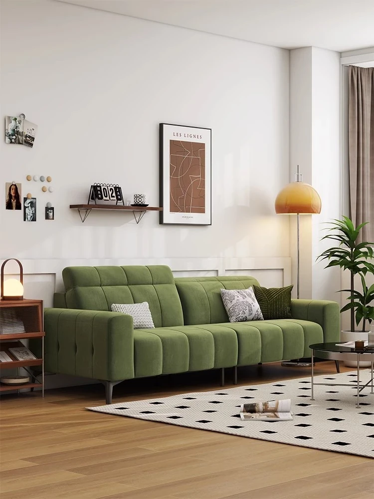 Vintage Green French Piano Key Sofa – Elegant Modern Three-Seater Couch for Small Living Rooms – Stylish and Space-Saving Fabric Sofa for Home Décor