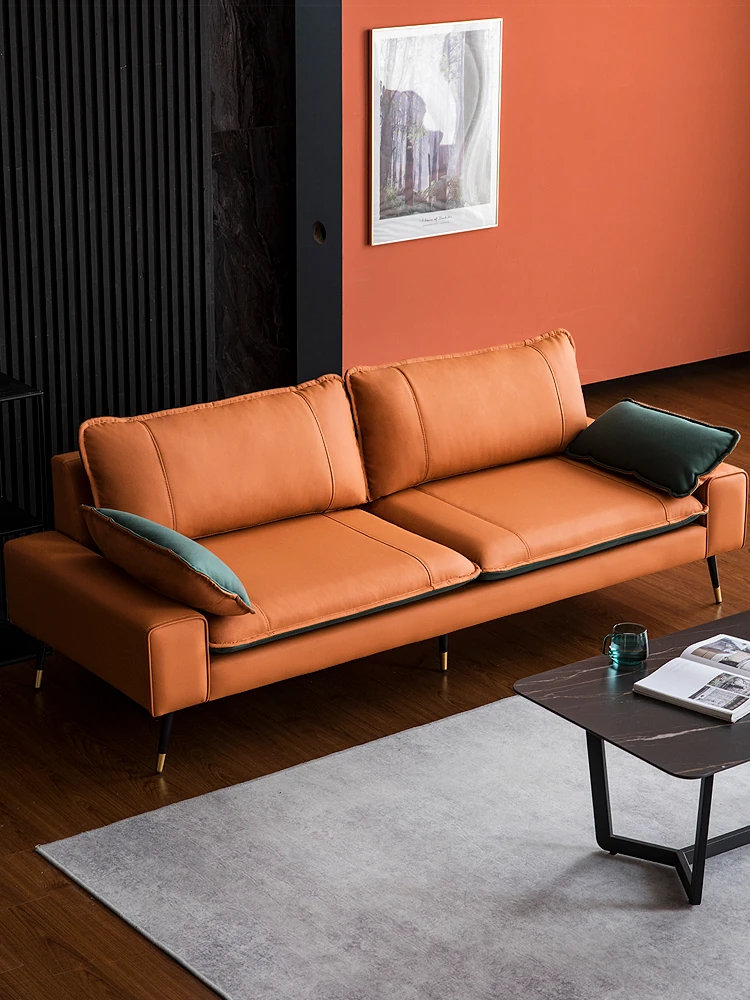 Elegant Italian Minimalist Leather Sofa for Small Spaces - Double Seat Modern Nordic Style Luxury Fabric Couch for Your Living Room