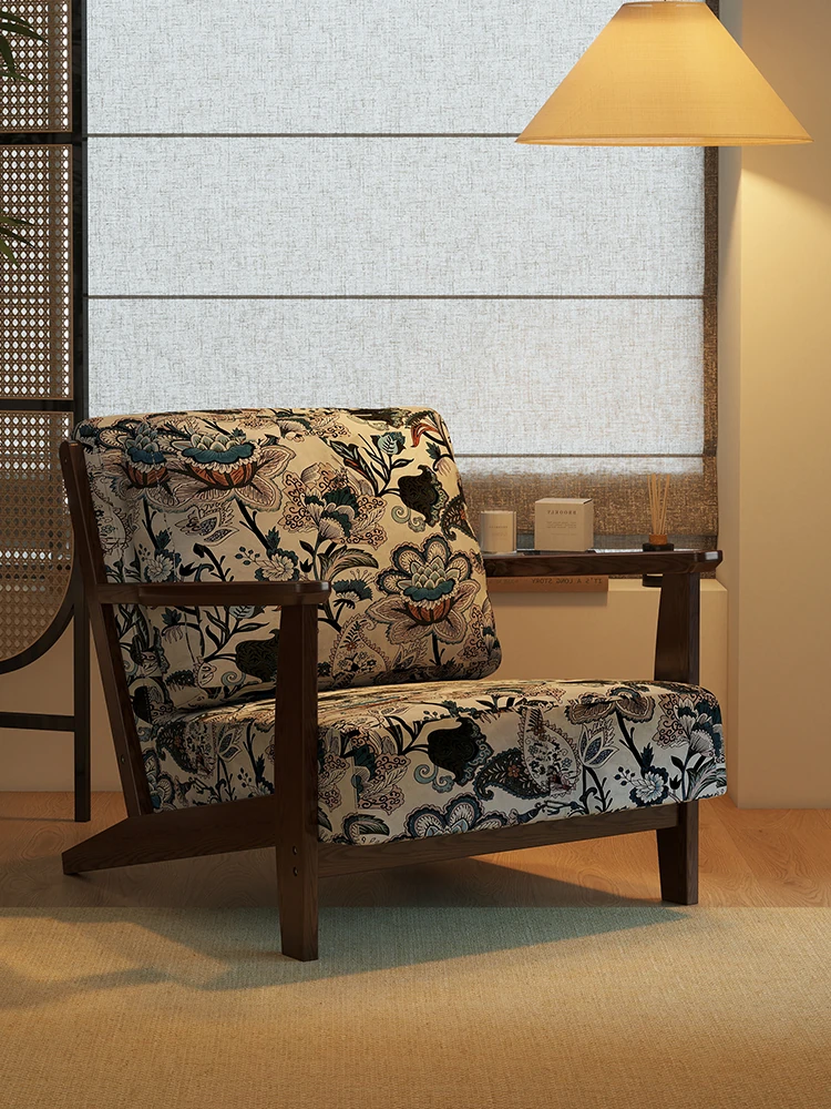 Cream Vintage Single Sofa - Retro Solid Wood Armchair for Small Living Rooms - Designer Lazy Chair for Ultimate Comfort and Style