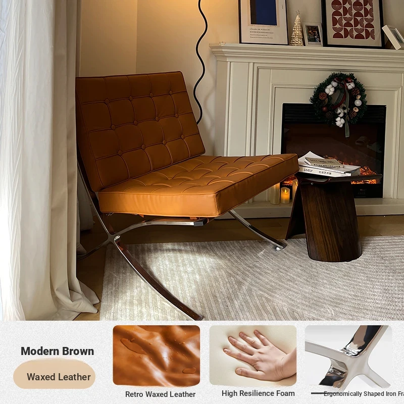 Designer Single Sofa Chair - Italian Chic High-End Lounge Chair for Living Room and Balcony, Modern Leisure Seat with Vintage Touch; Perfect for Cozy Relaxation.