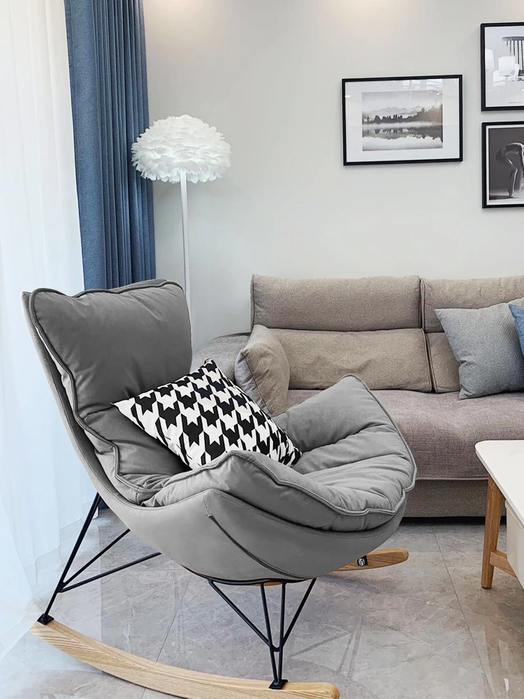 北欧風の軽奢リラックスロッキングチェア|おしゃれなリビングやバルコニーに最適|大人も寛げるサロン風ロッキングソファ|話題のカウチスタイル、ネット人気のうずまきチェア!