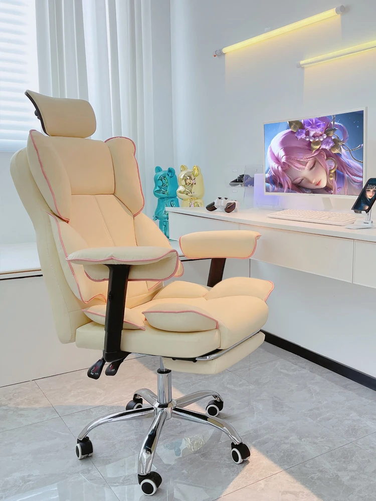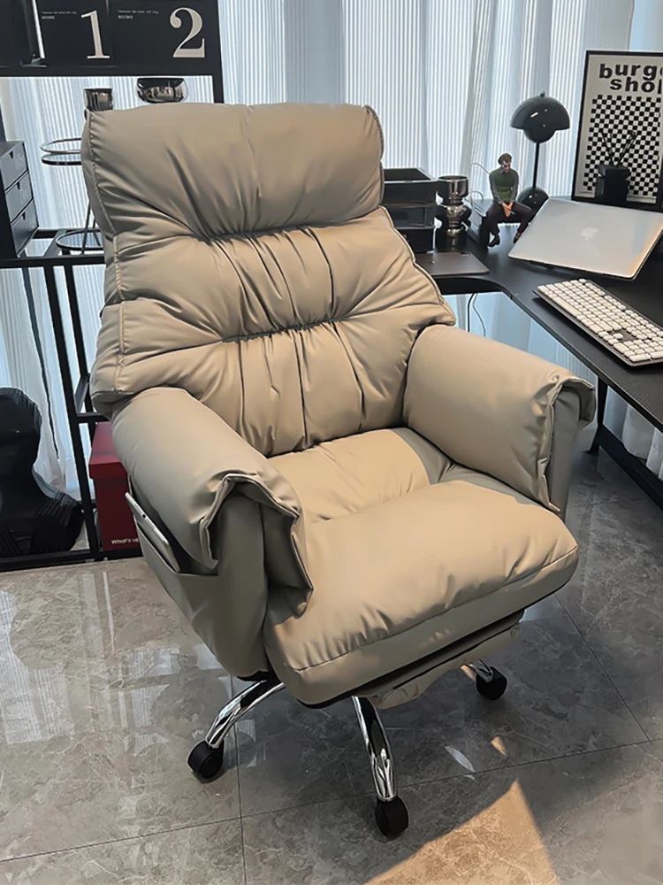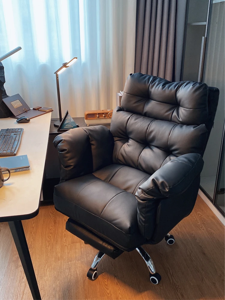 本革製のコンピューターチェア|リラックスできるソファチェア|シンプルラグジュアリーな書斎チェア|オフィスにも最適|座っても寝ても快適なリクライニングバックチェア