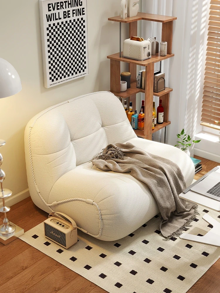 北欧風 シングルソファ 羊毛フリース使用のリラックスチェア|デザイナーズ ホワイトミニマリズム|ラグジュアリーで快適な寝室用の怠け者チェア!