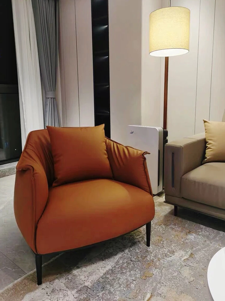 北欧風シンプルラグジュアリー一人掛けソファ|リビング・寝室・バルコニーに最適!くつろぎの時間を提供するレトロなレザーソファ|小さなスペースにもぴったり!